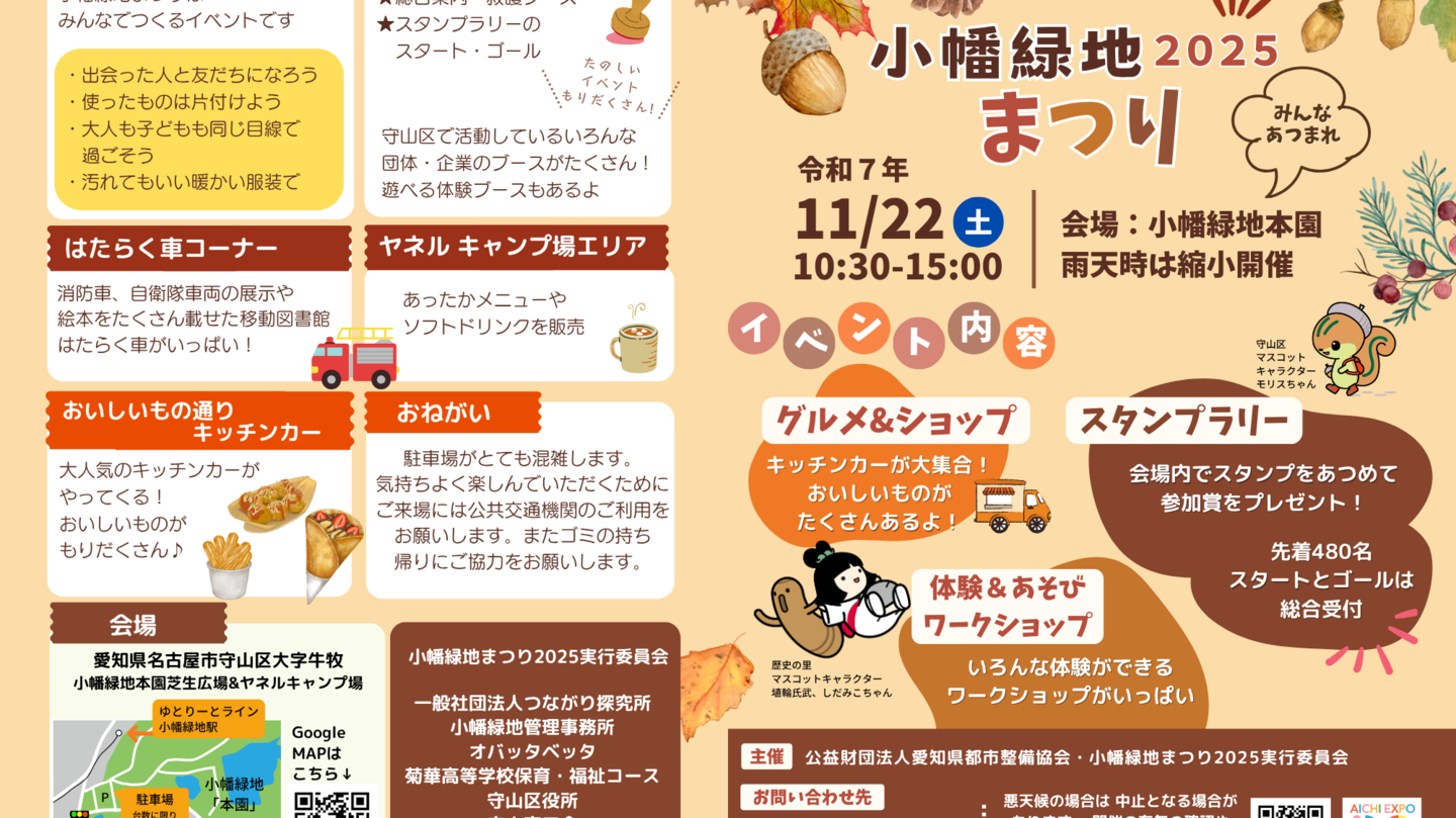 11月22日土曜日、小幡緑地の本園で、「小幡緑地まつり」が開催されます。つなしょは実行委員会で頑張っています。