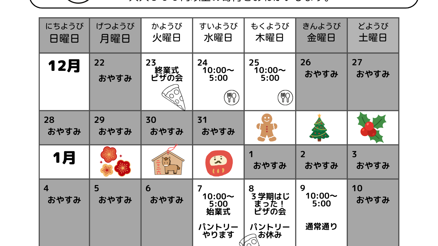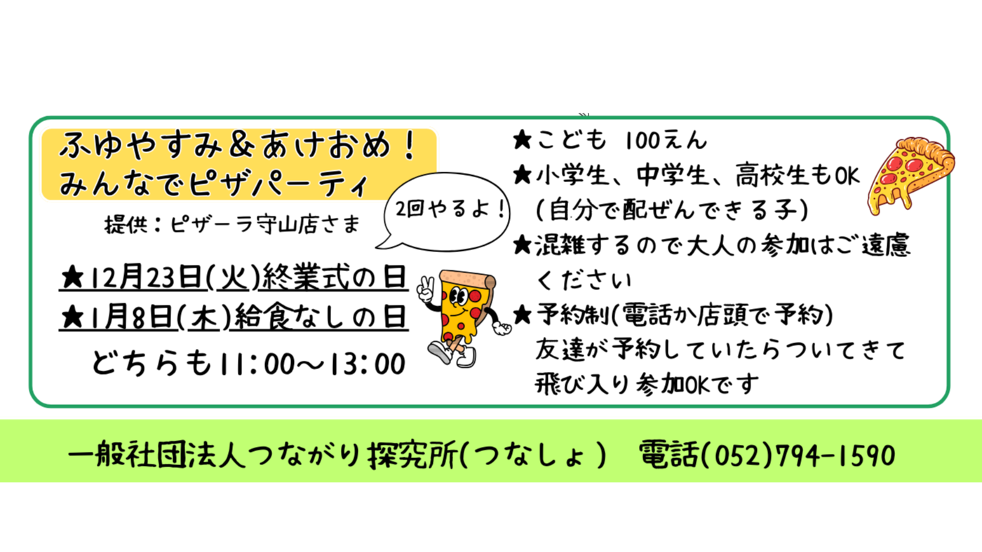ピザの会は12月23日(火)と2026年1月8日(木)の2回開催します。
